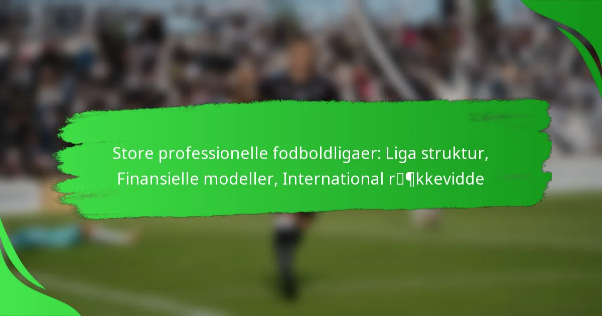 Store professionelle fodboldligaer er kendetegnet ved strukturerede formater, der involverer et fast antal hold, der konkurrerer i kampe, hvilket ofte fører til slutspil eller mesterskaber. De finansielle modeller for disse ligaer varierer meget, påvirket af indtægtskilder og spillerkompensation, som er essentielle for interessenter at forstå. Derudover har disse ligaer en betydelig international rækkevidde, der engagerer millioner af fans globalt og udnytter lukrative udsendelsesaftaler for at forbedre deres brand og indtægtsmuligheder.