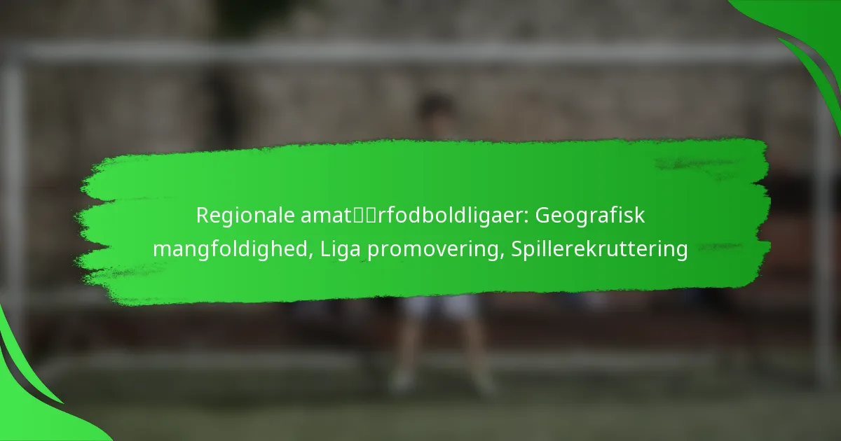 Regionale amatørfodboldligaer spiller en afgørende rolle i at give lokale spillere mulighed for at engagere sig i sporten, samtidig med at de fremmer fællesskabsånden. Geografisk mangfoldighed former disse ligaer ved at påvirke spillerrekruttering og konkurrenceforhold, hvilket afspejler de unikke kulturelle holdninger til fodbold i forskellige områder. For at trives skal disse ligaer implementere effektive promotionsstrategier, der udnytter markedsføring og fællesskabsengagement, hvilket i sidste ende øger synligheden og deltagelsen.